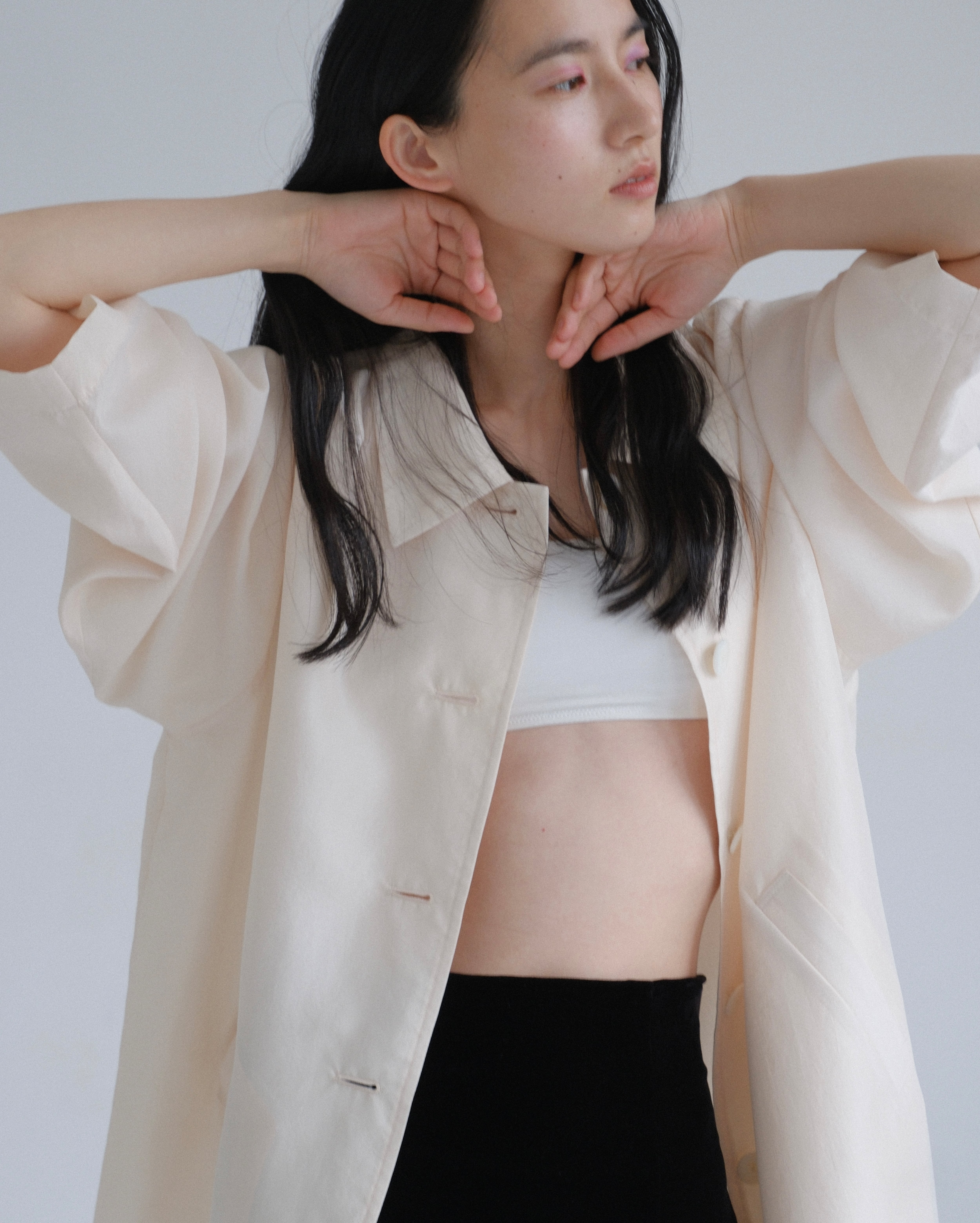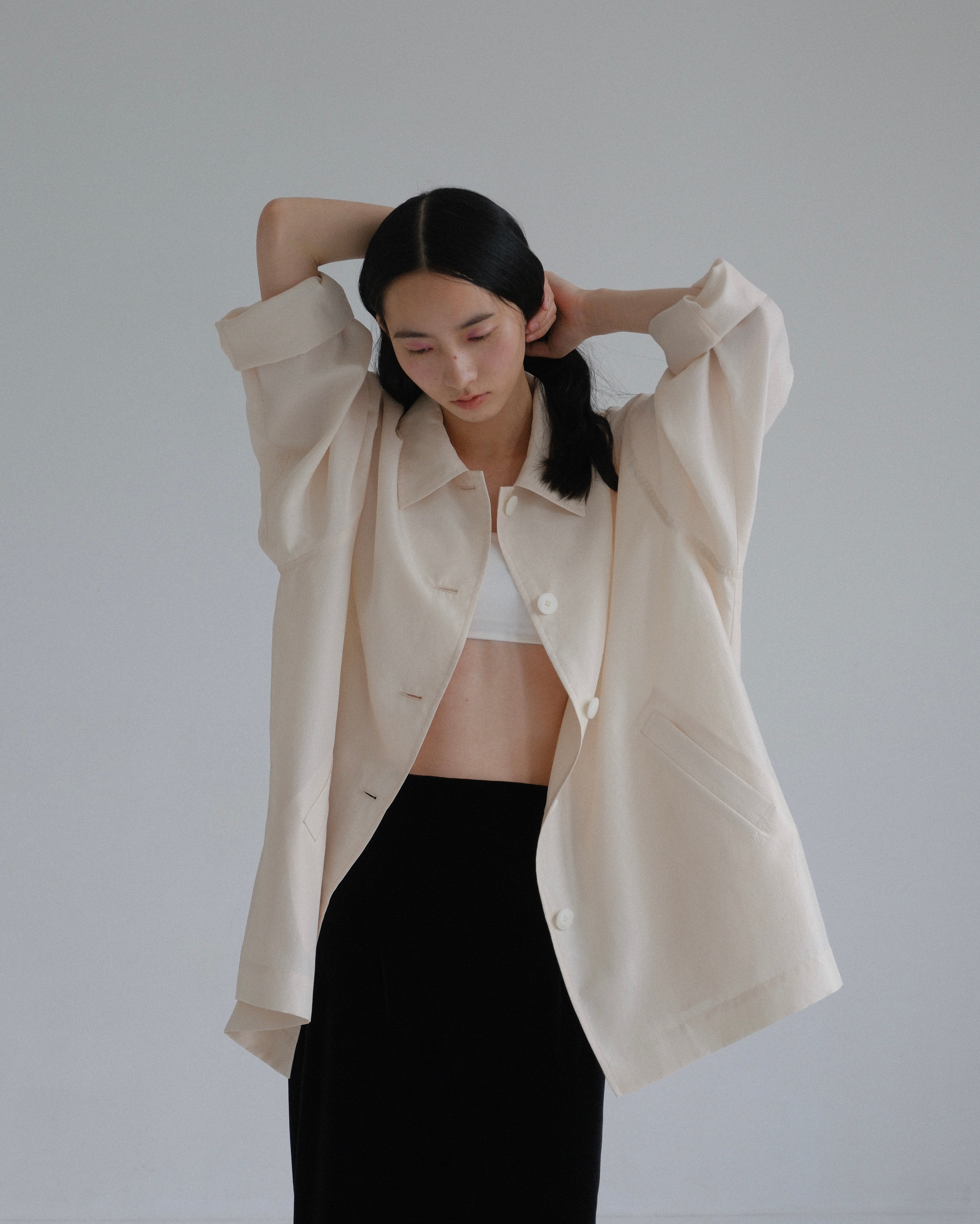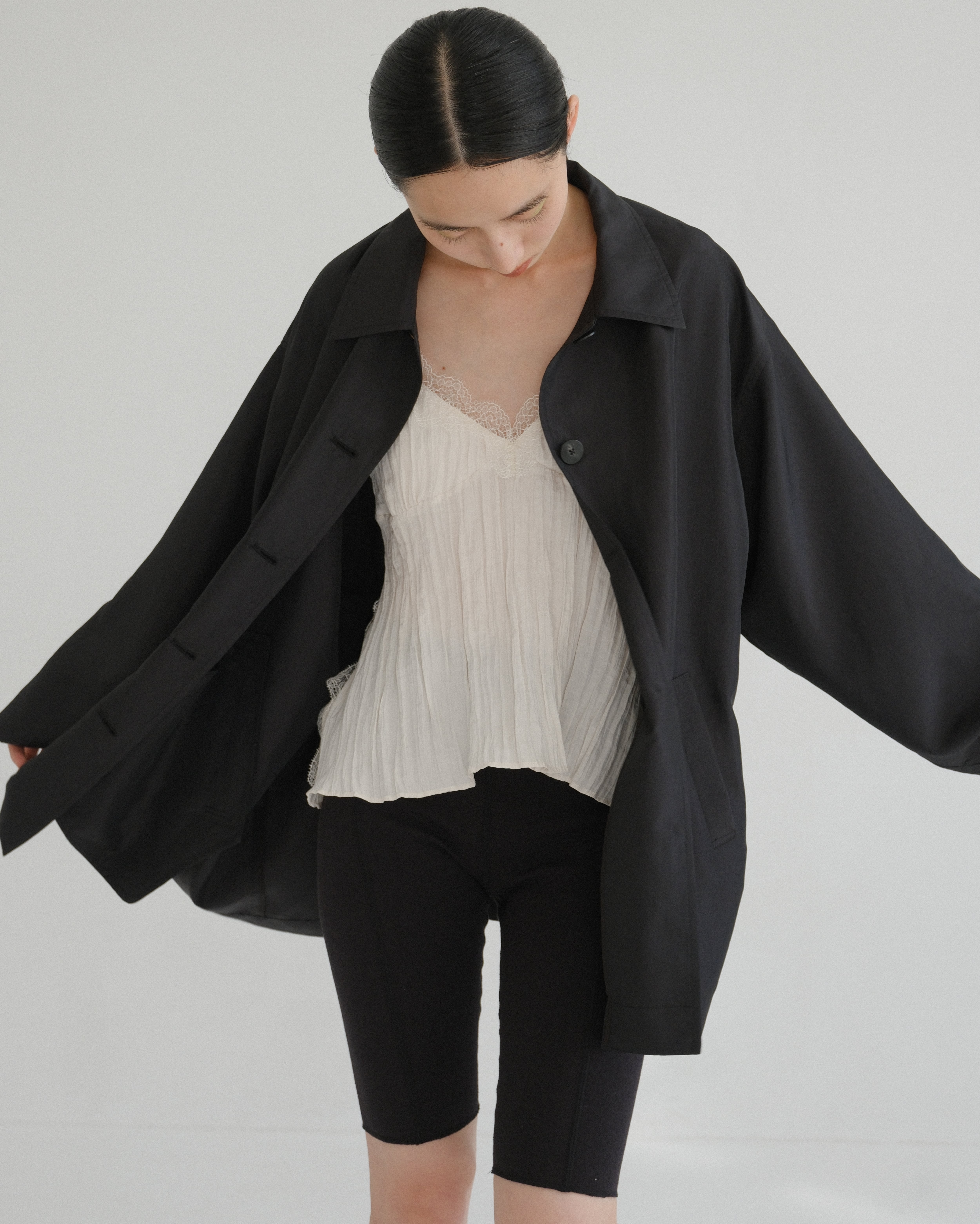 ルーズなシルエットで着用すると、自然なドレープが生まれ、柔らかな表情に。