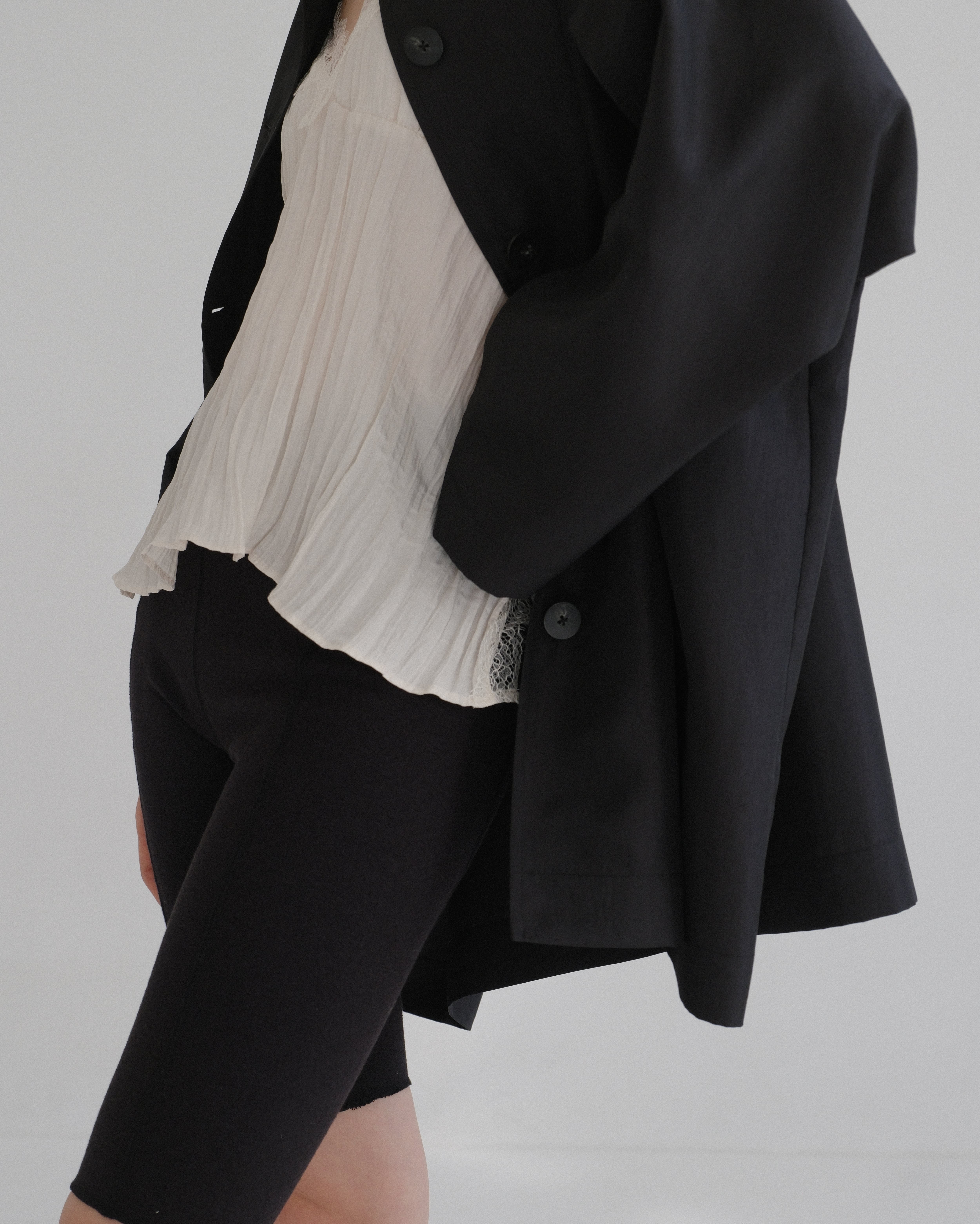 「夏でも着たい」というお声を多くいただき、今回は程よいシアー感のある生地を採用しました。